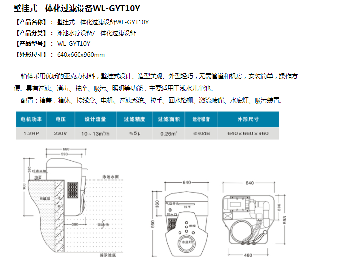 壁掛式一體化過濾設備 WL-GYT10Y