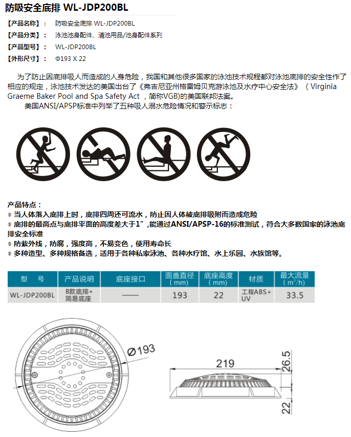 池身配件系列-防吸安全底排 WL-JDP200BL