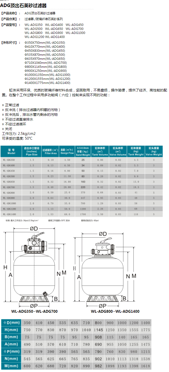 玻璃纖維石英砂系列-ADG頂出石英砂過濾器