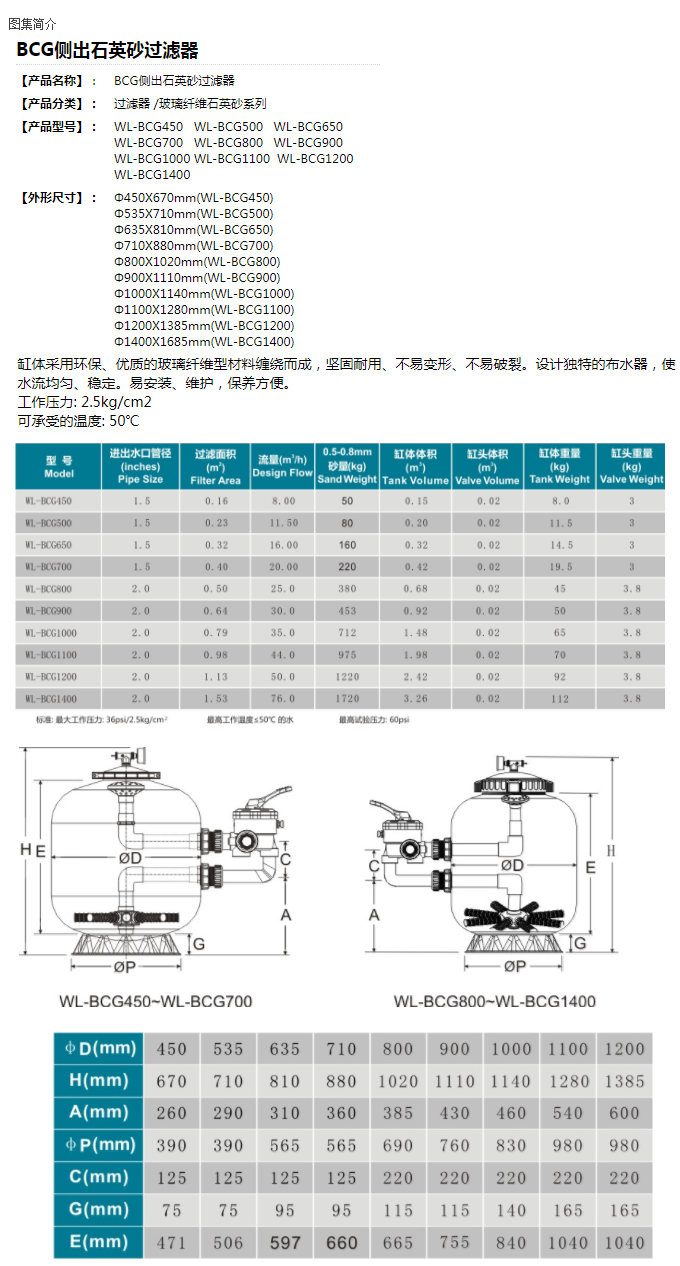 玻璃纖維石英砂系列-BCG側出石英砂過濾器