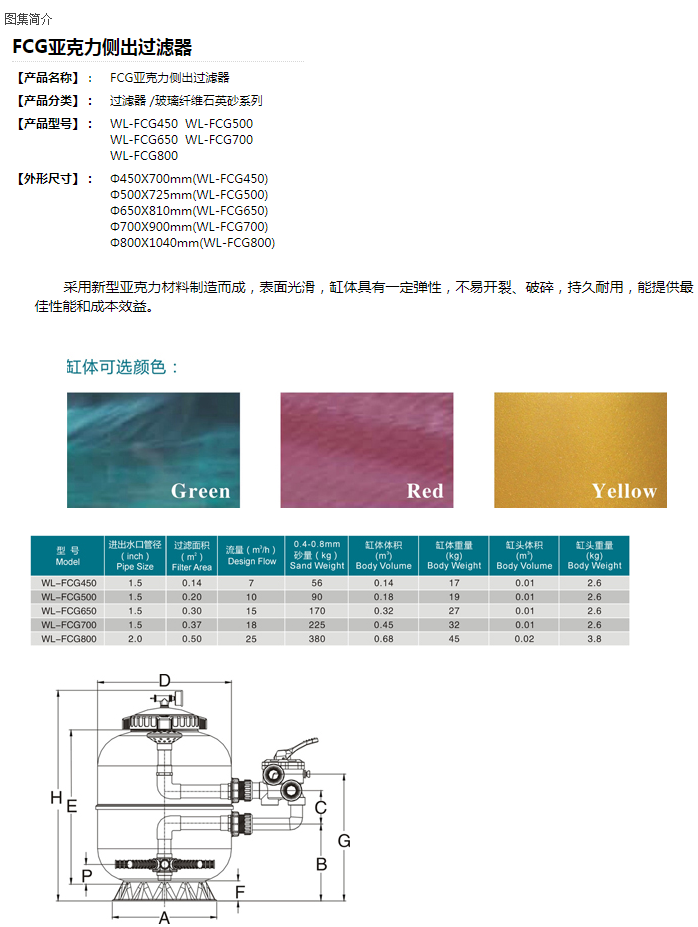 玻璃纖維石英砂系列-FDG亞克力側出過濾器