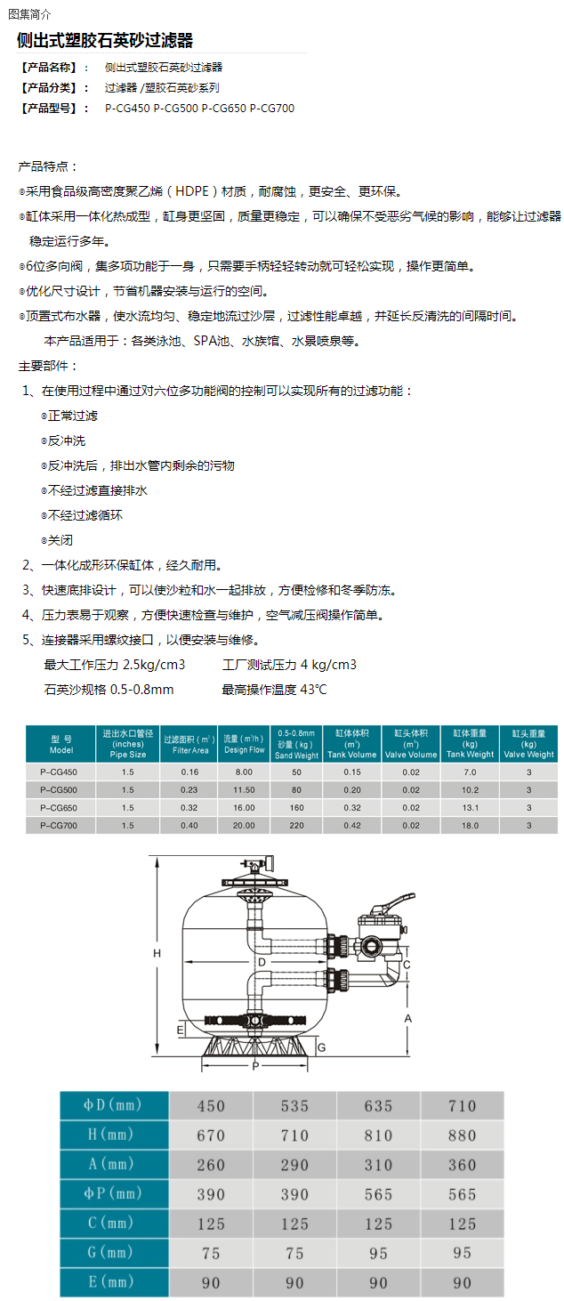 塑料石英砂石系列-側出式塑料石英砂過濾器